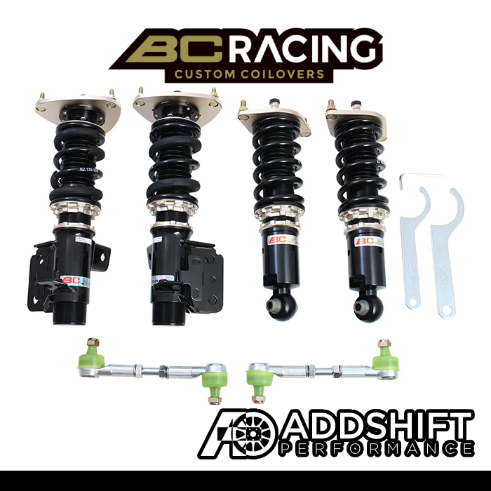 The BC Racing BR Series offers the most affordable entry into coilover suspension without sacrificing performance, comfort, build quality, vehicle height, or handling. This is done by extensively testing each vehicle then refining the coilover characteristics as many times as needed to ensure the most well-balanced and affordable aftermarket suspension conceivable. BC Racing takes great pride in choosing spring rates for our off-the-shelf kits that strike the perfect balance between comfort and performance so you're never stuck with an overspring suspension like many other brands sell. BC Racing offers one of the widest ranges of damping adjustment with 30-clicks of compression/rebound adjusted simultaneously on the BR Series. With meticulously chosen spring rates, damper valving, and one of the widest adjustment ranges in the industry, you can't go wrong with the BC Racing BR Series Coilover System.